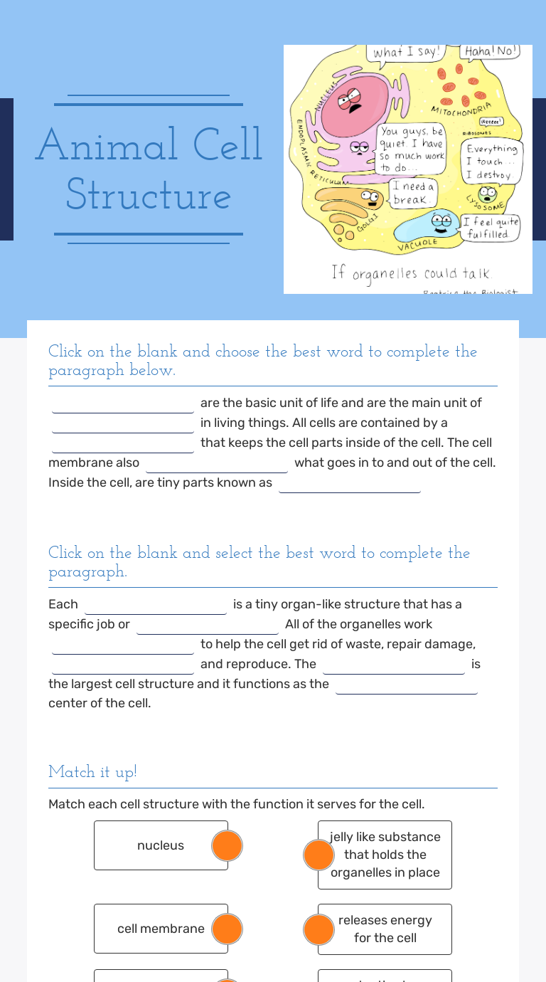 Though this animal cell diagram is not representative of any one particular type of cell it provides insight into the primary organelles and the intricate internal structure of most animal cells animal cell diagram edgenuity. Breaks down sugar molecules to supply energy.